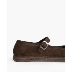 Zapato plano tipo mary jane con suela de yute. Cierre mediante hebi-Ila en el lateral. Acabado en punta redonda.