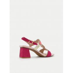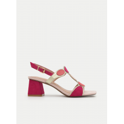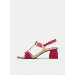 Atrévete con el color con estas sandalias de tacón ancho en tono fucsia combinadas con detalles multicolor. Un diseño vibrante y sofisticado que transforma cualquier look en una declaración de estilo.