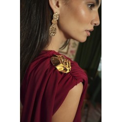 Destaca por su delicada hebilla dorada en el hombro, y por la abertura en la falda, que aporta movimiento y feminidad. La cremallera trasera garantiza un ajuste cómodo y favorecedor.