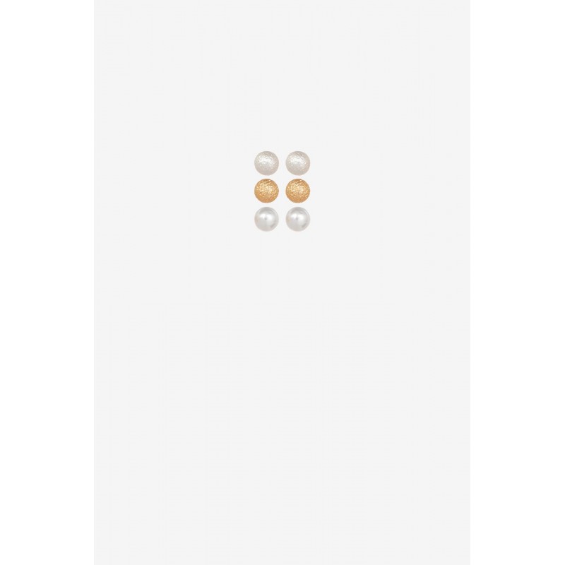 Pack 3 pendientes cortos redondos en dorado, plateado y perla. Cierre con tapón.