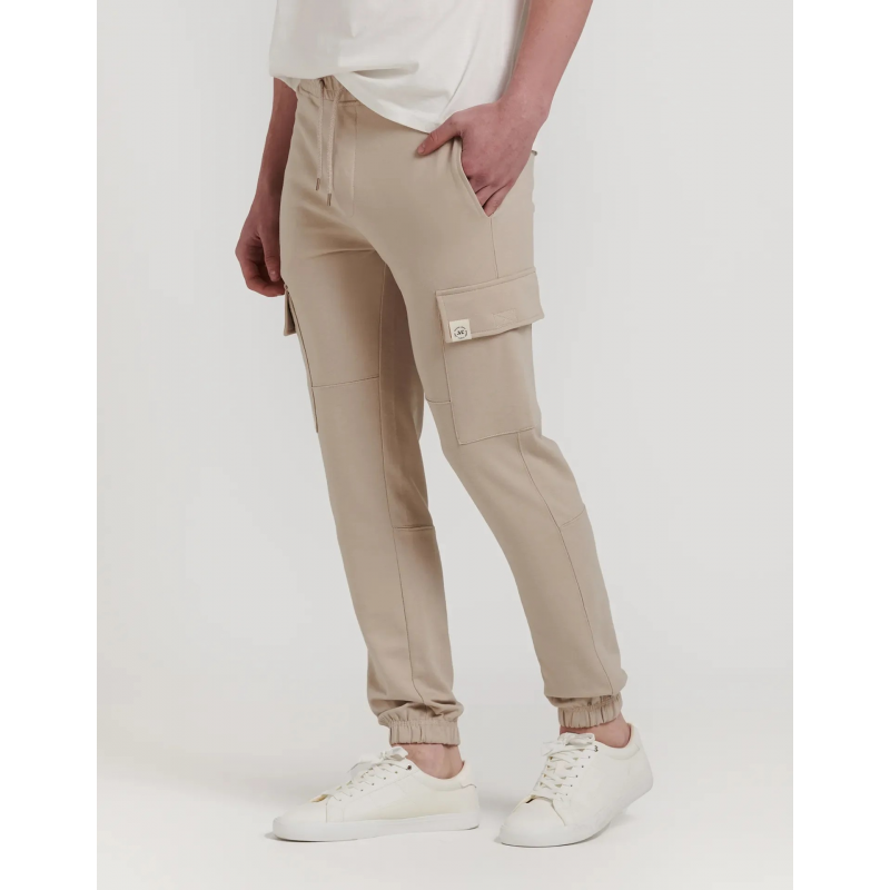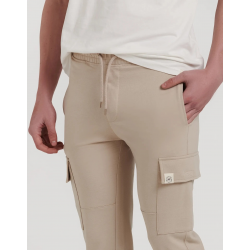 Pantalón de chándal tipo cargo. Bajos acabados en puño. Cintura elástica con cordones ajustables. Bolsillo en los laterales con cierre de velcro. | Composición: 60% algodón y 40% poliéster