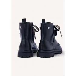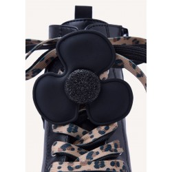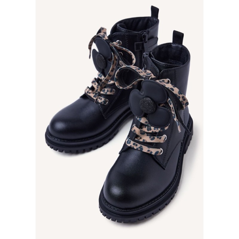 Botas con brillo y flor de quita y pon. Suela tipo track. Cuentan con cremallera en el lateral interno de la caña y plantilla acolchada.